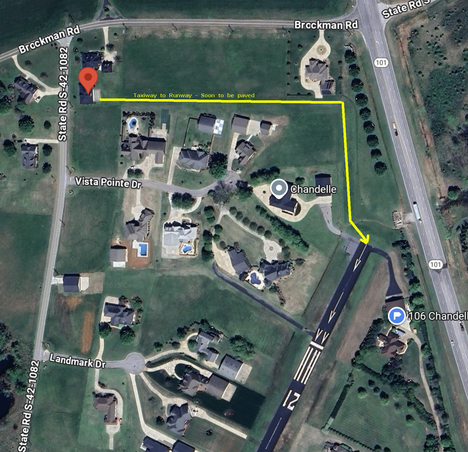 The hangar connects via a deeded taxiway easement to the 3,700′ runway.